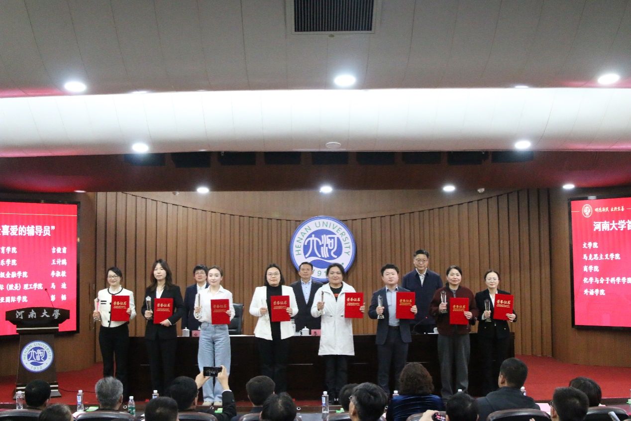 首届“我最喜欢的辅导员”荣誉称号,2023级本科生金瑜作为国家奖学金获奖代表登台领奖。
