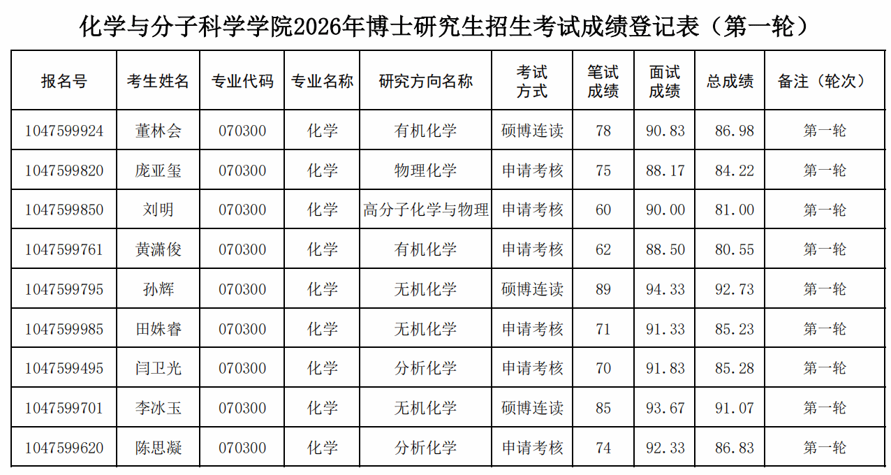 主播视频 2026年博士研究生招生考试成绩登记表(第一轮)