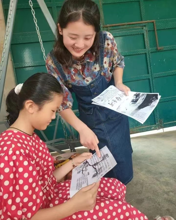 她热情地向村民介绍了黄河流域的一些基本知识以及黄河流域目前存在的问题,最后她就关于“保护母亲河,我们能做些什么”提出了自己的一些建议。
