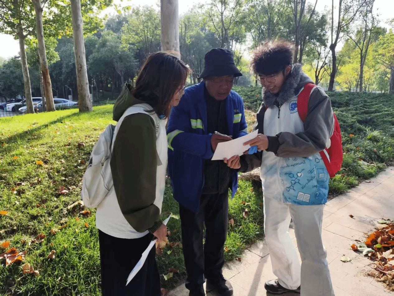 与此同时,志愿者们在公园人流密集区进行宣传,向过往群众发放环保知识手册,耐心讲解垃圾分类技巧、减少白色污染的重要性以及保护龙子湖生态环境的意义。为进一步了解市民对生态环保的认知与需求,志愿者们还热情邀请群众参与环保调查问卷填写。问卷内容涵盖日常环保行为习惯、对公园环境治理的建议、环保知识普及需求等多个维度,过往市民纷纷驻足,认真填写问卷,不少人还主动与志愿者交流环保心得,分享自己在生活中践行低碳环保的小妙招。